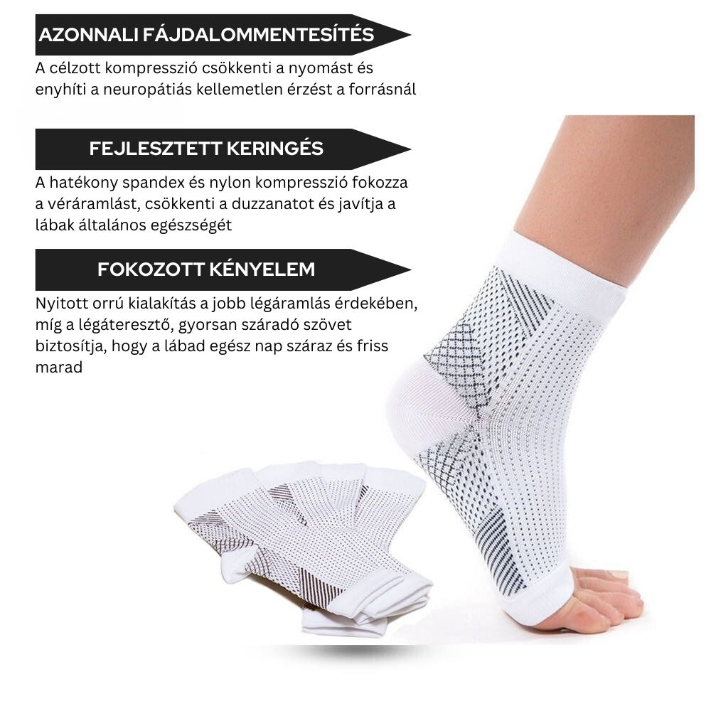 - Célzott kompresszió, lábujjnyomás nélkül: Úgy tervezték, hogy elősegítsék a véráramlást a boka és a vádli területén, csökkentve a duzzanatot és a fáradtságot, anélkül, hogy nyomást gyakorolnának a lábujjakra – ideális neuropátiában vagy keringési problémákban szenvedők számára.